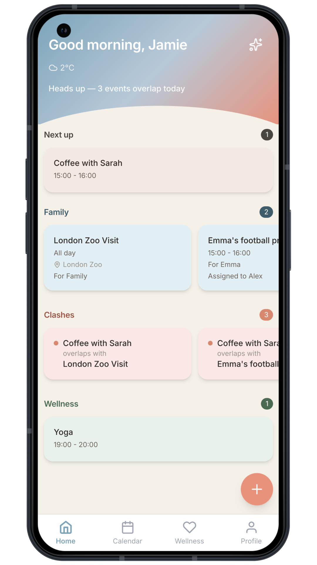 A beautiful daily view of your personal and family events. Without the overwhelm.